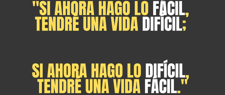 "Si ahora hago lo fácil, tendré una vida difícil; si ahora hago lo difícil, tendré una vida fácil."