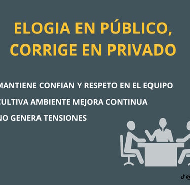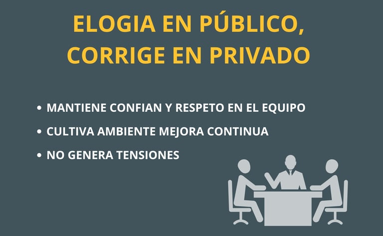 Al elogiar públicamente y corregir en privado, cultivas un ambiente donde la mejora continua y el desarrollo profesional son prioridad.